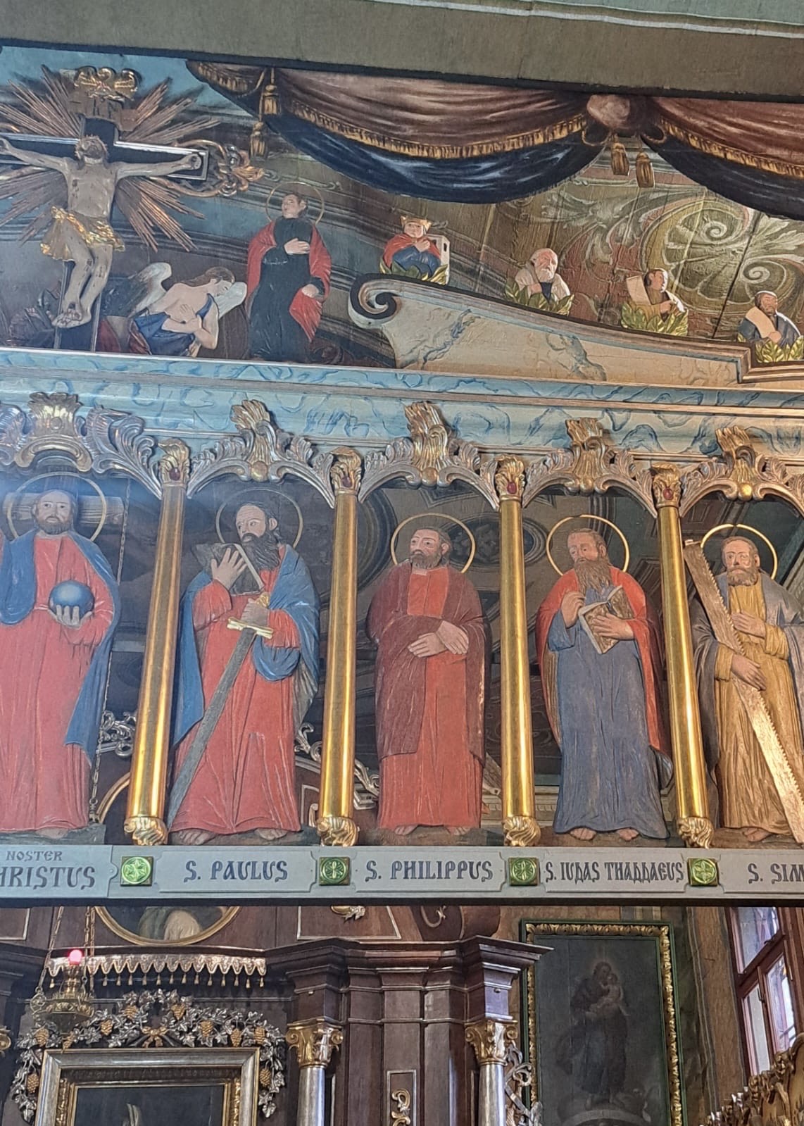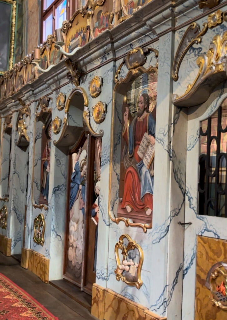 te dzieła, może niemal „czytać” Pismo Święte oczami artysty. Wyjątkowym elementem tej cerkwi są także obrazy umieszczone na chórze. Przedstawiają one nie świętych, lecz mieszkańców Górzanki sprzed stu lat – zwykłych ludzi, którzy niegdyś modlili się w tej świątyni. Ich twarze spoglądają na wiernych, łącząc przeszłość z teraźniejszością i przypominając, że to oni byli żywą wspólnotą tej cerkwi. Cerkiew w Górzance to miejsce niezwykłe – świadectwo wiary, historii i kultury. Spacerując po jej wnętrzu, mieliśmy wrażenie, że przenosimy się w czasie, spotykając zarówno apostołów i bohaterów biblijnych, jak i dawnych mieszkańców tej bieszczadzkiej wioski. To doświadczenie, które na długo pozostanie w naszej pamięci.